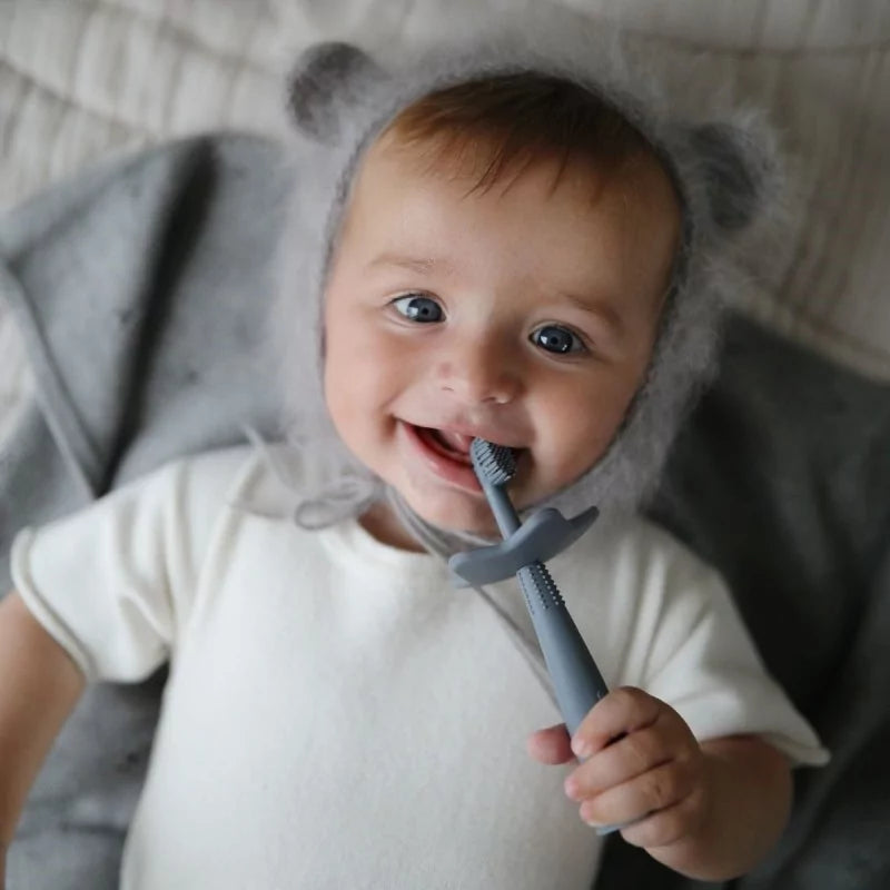 Faites de l'heure du brossage un moment amusant ! Cette brosse à dents au design ludique encourage les petits à adopter de bonnes habitudes de manière autonome. Fabriquée en silicone 100% alimentaire, elle est douce pour les gencives avec ses poils ultra souples. Disponible dans des couleurs apaisantes, elle est équipée d'une ventouse pratique et d'un capuchon de sécurité pour éviter les étouffements.