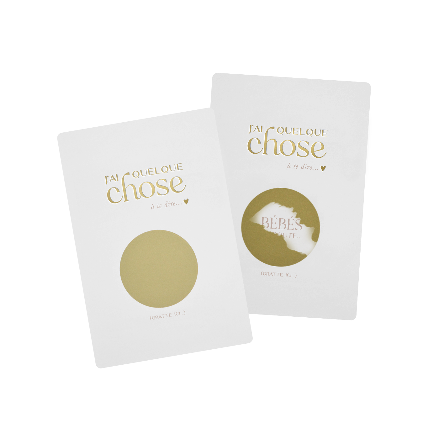 Annoncez votre grossesse de manière ludique et originale avec nos cartes à gratter "Bébé en route" ! Ces cartes sont le moyen parfait pour partager la grande nouvelle avec vos proches tout en ajoutant une touche d’amusement à l’annonce.