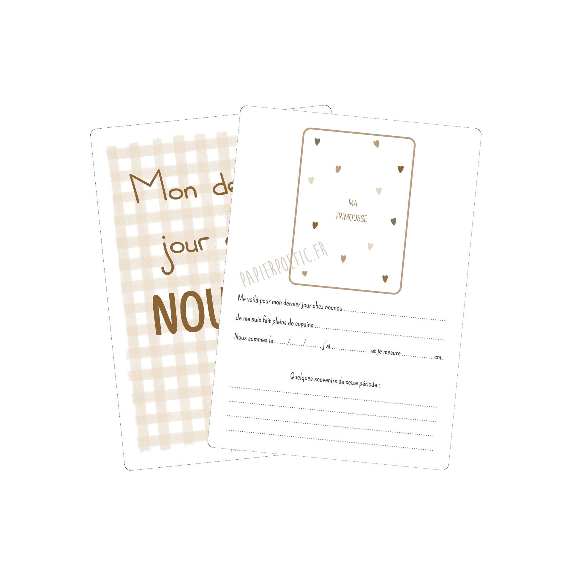 Immortalisez les moments précieux passés chez Nounou avec ce duo de cartes. Complétez le dos avec une photo et des souvenirs, tels que les personnes qui ont pris soin de lui et ses amis. Glissez-les dans sa boîte à souvenirs pour qu'il puisse les redécouvrir plus tard. N’oubliez pas de capturer une photo souvenir de votre enfant tenant sa carte !