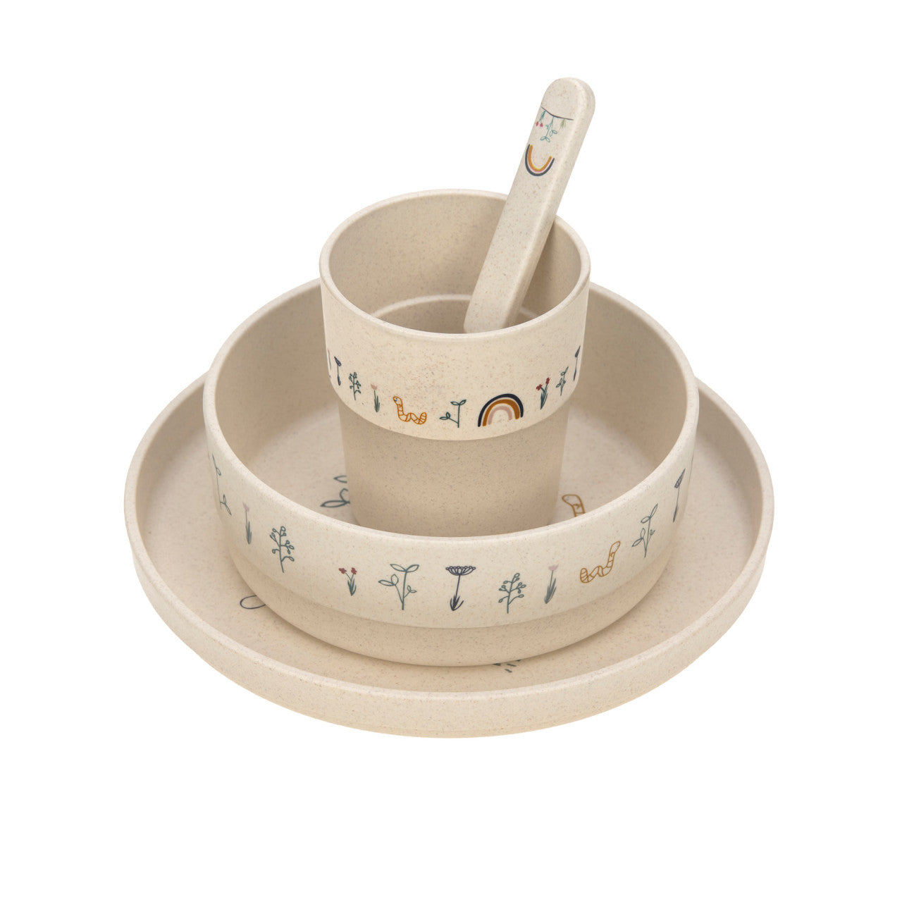 - Contenu : 1 assiette, 1 bol, 1 gobelet, 1 cuillère.