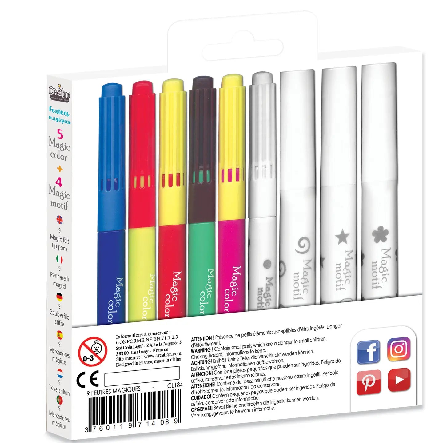 Ce pack contient 5 feutres colorés classiques et 4 feutres "Magic Motif" pour apporter une touche de magie aux créations des enfants. Idéal pour s'amuser tout en stimulant leur imagination et leur créativité.
