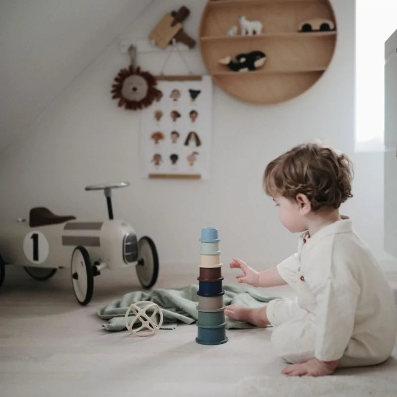 Indispensable dans le monde des bébés, cette tour à empiler est bien plus qu'un simple jeu ! En plus d'encourager le développement des capacités motrices et cognitives, elle se transforme en jeu de bain amusant grâce à son silicone résistant à l'eau. Bébé peut s'amuser à remplir et vider les gobelets tout en apprenant !