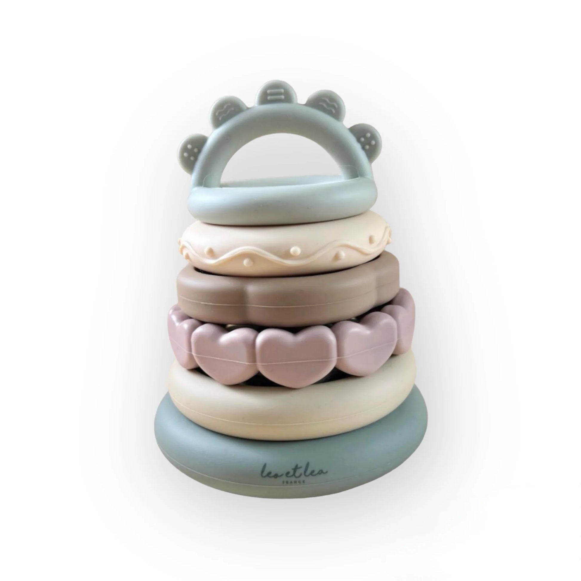 Prêt à s'amuser tout en apprenant ? Notre jouet à empiler est un incontournable pour les bébés ! Avec ses formes ludiques et ses textures captivantes, il aide les tout-petits à développer leurs compétences motrices et cognitives. Et cerise sur le gâteau : un anneau de dentition tout doux se cache au sommet de la tour, parfait pour les petits bouts qui aiment mâchouiller. Votre mini va l’adorer !