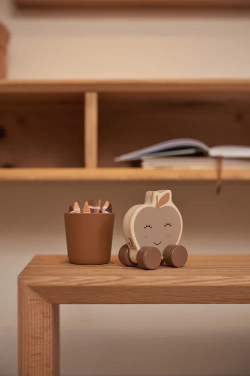 Vroum vroum ! Amusement garanti avec cette petite pomme sur roulettes. Parfaite pour jouer à la maison ou à emporter en déplacement, elle est facile à tenir et convient aux enfants à partir de 1 an. Si votre bébé est encore trop petit pour jouer avec, cette adorable figurine fait également une belle décoration dans la chambre de bébé.