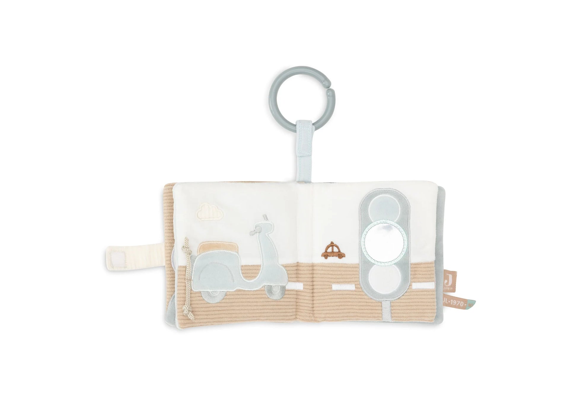Découvrez un carnet d'activités fascinant sur le thème On The Go! Ce livre interactif est composé de quatre pages en tissu côtelé super doux dans les tons Sea Green et Cloud Blue, parfaites pour les petites mains curieuses. Chaque page cache des surprises, telles que des plis, des ficelles ludiques et des miroirs en forme de feux de circulation. De plus, une clé amusante qui émet un son de crépitement ajoute encore plus de fun. Ce livret stimule les sens de votre enfant et offre des heures de jeu, même en déplacement.