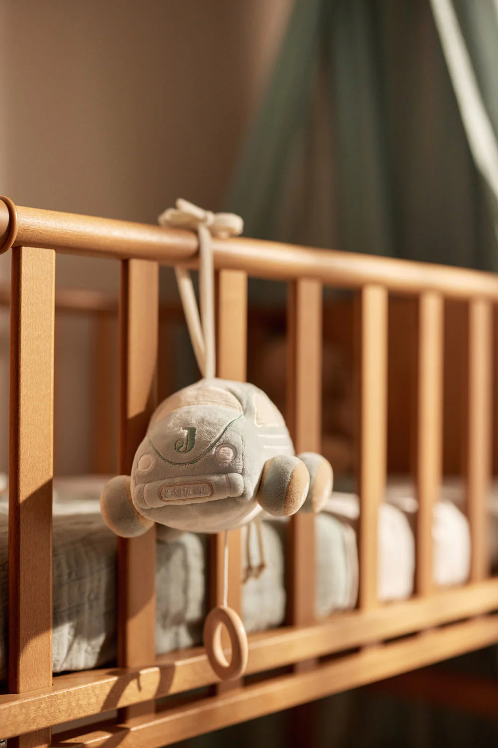 Faites rêver votre bébé avec ce mobile musical On The Go, en forme de petite voiture. Sa teinte Sea Green, ses roues couleur biscuit et ses fenêtres en tissu côtelé lui donnent un charme tout particulier. En tirant sur le cordon, bébé entendra la douce mélodie Lullaby, idéale pour le bercer et l’aider à s’endormir paisiblement. Un compagnon parfait pour créer un environnement doux et apaisant autour de bébé.